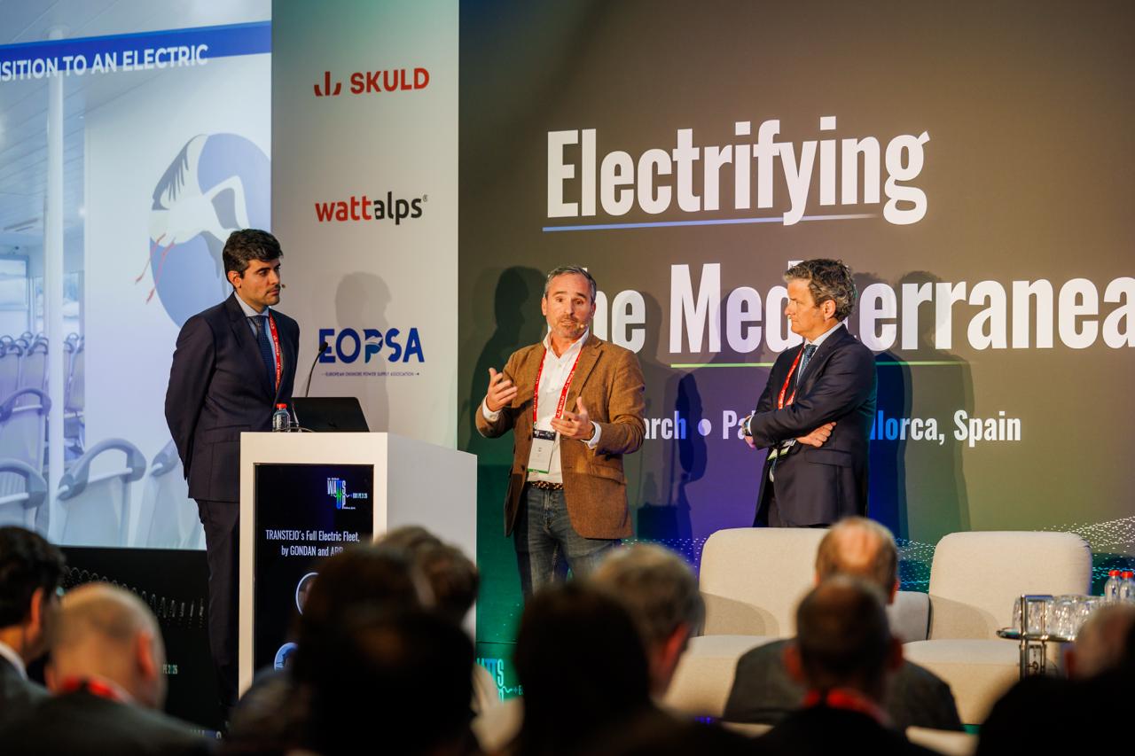 Acompanhado por Alejandro Zorzo, Marine Market Country Manager da ABB Marine & Ports, e por Luis Mourelle, Commercial Director da GONDAN Shipbuilders, Rui Rei apresentou o projeto da frota elétrica, destacando que “a TTSL escolheu navios 100% elétricos, principalmente, para liderar a descarbonização do transporte fluvial no rio Tejo e cumprir metas de sustentabilidade ambiental e eficiência operacional”.